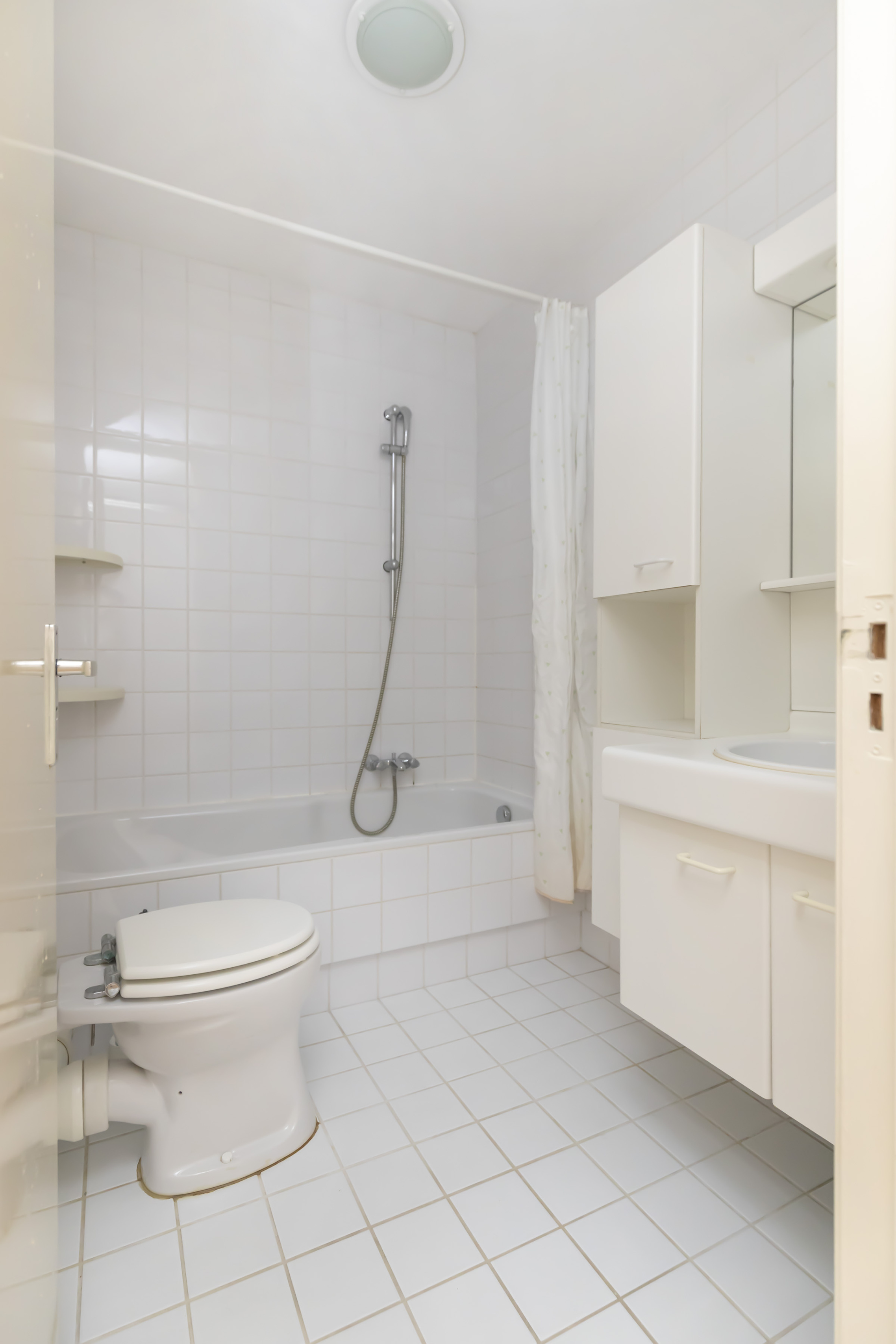 De halfopen keuken ligt centraal in het appartement en biedt volop mogelijkheden om naar eigen smaak te moderniseren. Daarachter ligt de ruime badkamer. Aan de rustige achterzijde bevindt zich een ruime slaapkamer.