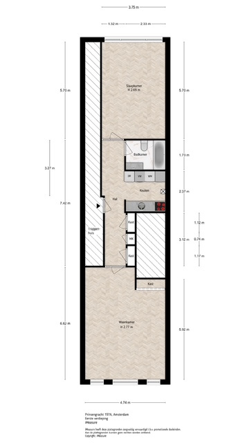 Volgens het NEN meet rapport is het woonoppervlak 75 m2